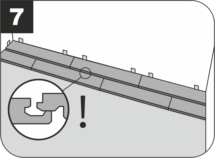 7.4.1 Плашки следующего ряда соединяются сначала по короткой стороне. После этого их нужно соединять по длинной стороне с предыдущим рядом.